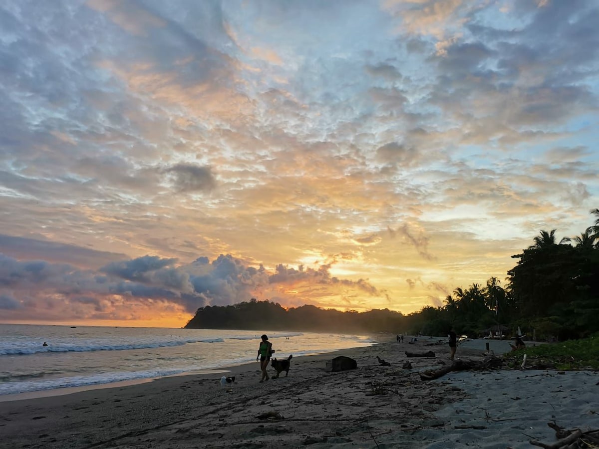 Welcome to Tico Tiki, where you can experience EVERYTHING Sámara has to offer! Perched on a hill with a breathtaking ocean view, our exclusive location provides a rare trifecta of fun and leisure: • 5-minute stroll to the beach • 10-minute walk to the town center • Jungle hiking trails right outside your door Tico Tiki is the Ultimate Beach Getaway, including wildlife-watching and convenience. Tropical Dreams come true here!